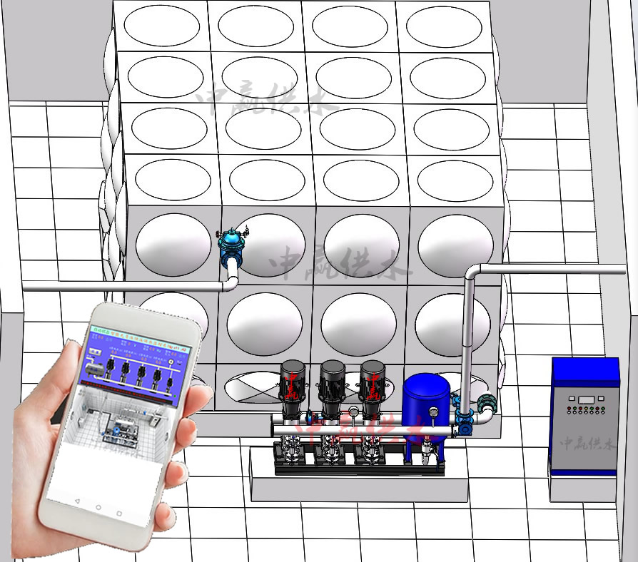 供水設(shè)備、服務(wù)器、智能手機(jī)通過Modbus通訊協(xié)議,對無負(fù)壓供水設(shè)備的運(yùn)行情況進(jìn)行遠(yuǎn)程操控,以達(dá)到節(jié)能降耗、隨時隨地管理的功效。